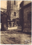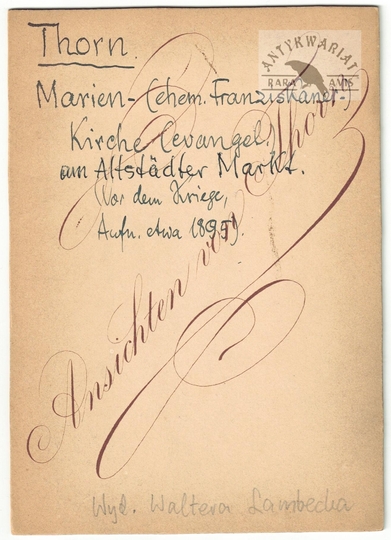 [TORUŃ - kościół Najświętszej Marii Panny - fotografia widokowa, sytuacyjna - ujęcie w formacie gabinetowym]. [1895]. Fotografia form. 14,9x10,6 cm na oryg. podkładzie form 14,9x10,6 cm, wykonane w [atelier A. Jacobi w Toruniu].