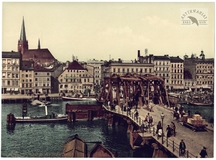 [SZCZECIN - Most Długi - widok z Łasztowni - fotochrom]. [k. XIX w.]. Fotochromolitografia form. 16,8x22,4 cm, wykonana przez firmę Photochrom i Photoglob Zurich.