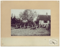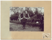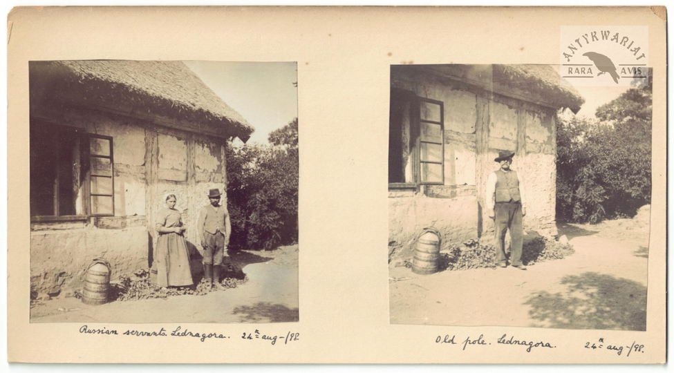 [LEDNOGÓRA, koło Gniezna - polscy robotnicy - fotografie pozowane]. [1898]. Zestaw 2 fotografii form. ca 8,5x8,5 cm na wspólnym podkładzie form. ca 12x22 cm, nieznanego autorstwa.