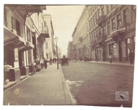 [WARSZAWA - ulica Marszałkowska - nieistniejący fragment miasta - fotografia sytuacyjna, widokowa]. [pocz. XX w.]. Fotografia form. 9x11,7 cm, nieznanego autorstwa.