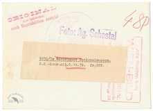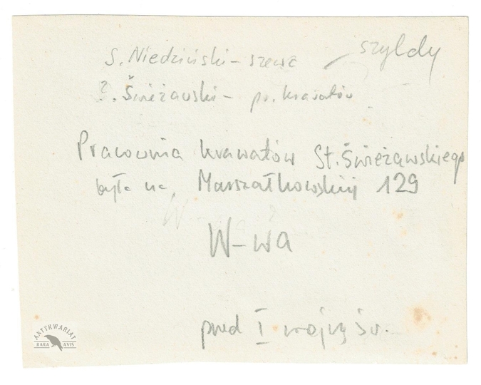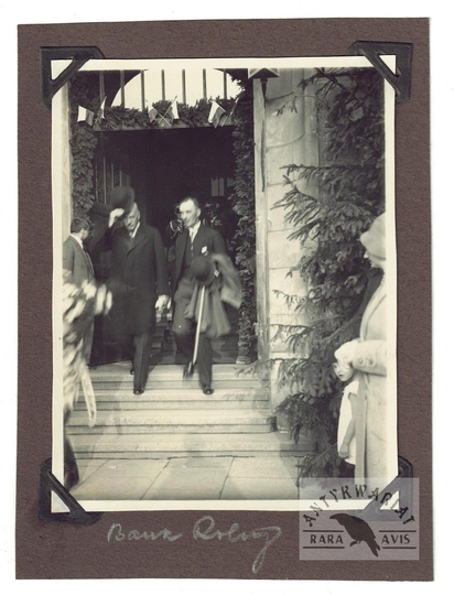 [MOŚCICKI Ignacy - prezydent RP wychodzący z Banku Rolnego w Warszawie - fotografia sytuacyjna]. [1926?]. Fotografia form. 11x8,4 cm na podkładzie form. 13,6x10 cm, nieznanego autorstwa.