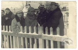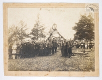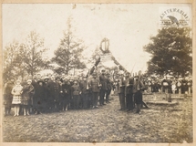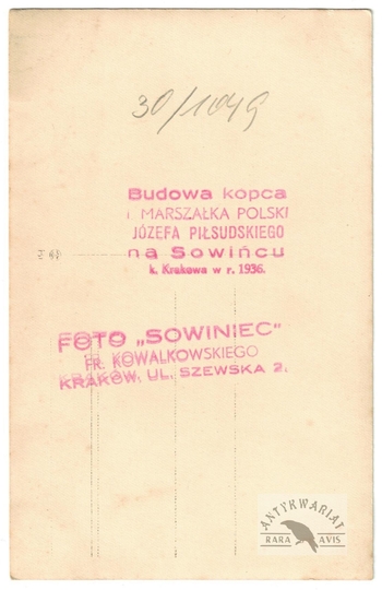 [KRAKÓW - sypanie kopca na Sowińcu - fotografia sytuacyjna, pozowana]. [VI 1936?]. Fotografia form. 8,8x13,8 cm, wykonana przez Foto "Sowiniec" Franciszka Kowalkowskiego w Krakowie.