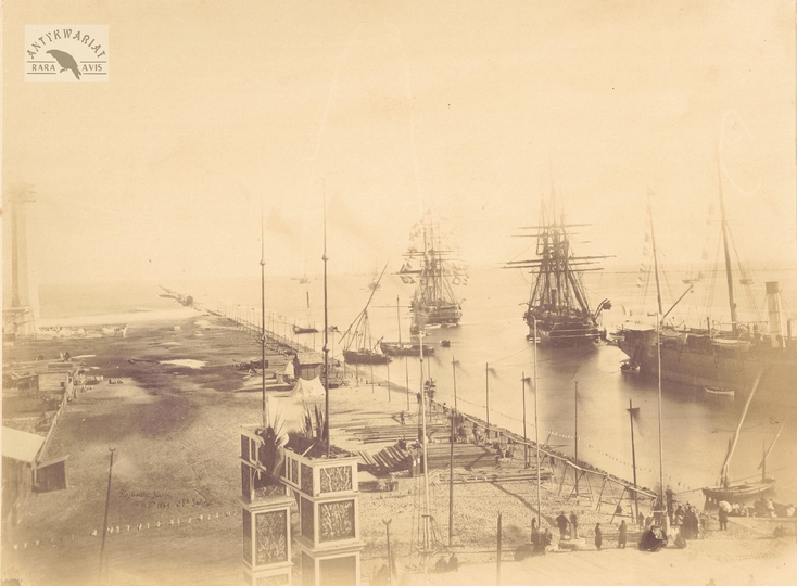 [PORT SAID - budowa Kanału Sueskiego w obiektywie Justyna Kozłowskiego - fotografia widokowa, sytuacyjna - ujęcie w dużym formacie]. 16 IX 1869. Fotografia form. 20,7x27,6 cm na podkładzie form. 22,2x29 cm.