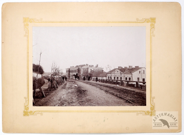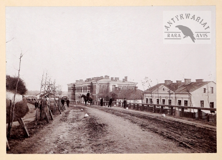 [CHEŁM - widok na Techniczną Szkołę Kolejową - fotografia widokowa, sytuacyjna - ujęcie w dużym formacie]. [przeł. XIX/XX w.]. Fotografia form. 15,3x22 cm na oryg. podkładzie form. ca 25x34,5 cm, autorstwa J. Szyszko.
