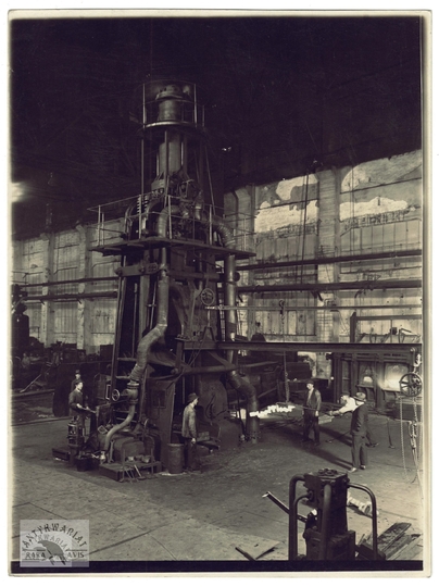 [CHORZÓW - kuźnia w Hucie Bismarcka - fotografia sytuacyjna]. [nie przed 1928]. Fotografia form. 18x24 cm, autorstwa Maxa Steckela w Katowicach.