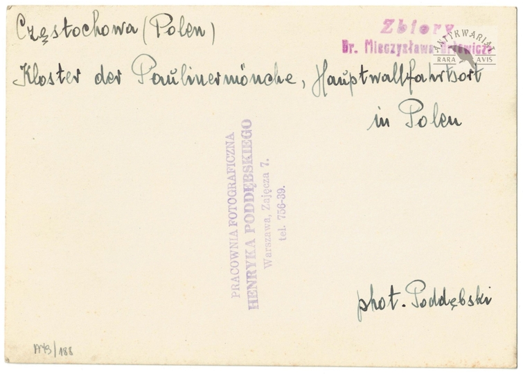 [CZĘSTOCHOWA - Klasztor OO. Paulinów - fotografia widokowa]. [l. 30. XX w.]. Fotografia form. 12x17 cm, autorstwa Henryka Poddębskiego.