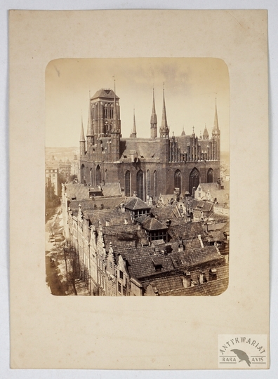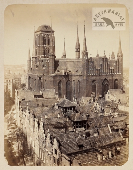 [GDAŃSK - starówka z kościołem Mariackim - fotografia widokowa w dużym formacie]. [1866?]. Fotografia form. 24,5x18,3 cm, na oryg. podkładzie form. ca 37x26,5 cm, autorstwa [Richarda Gottheil'a w Gdańsku].
