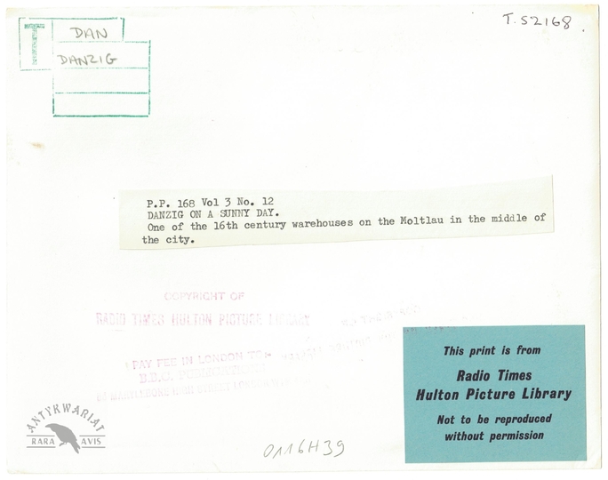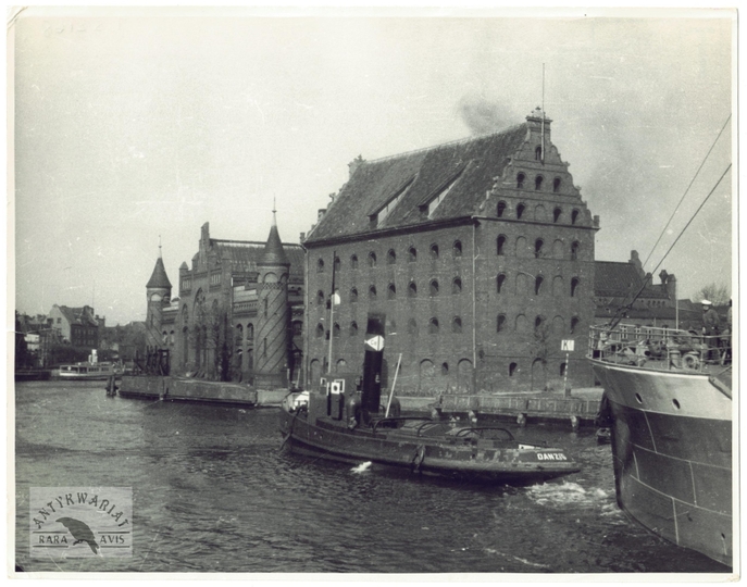[GDAŃSK - spichlerz nad Motławą - fotografia prasowa]. [l. 30. XX w.]. Fotografia form. 16,3x20,8 cm.