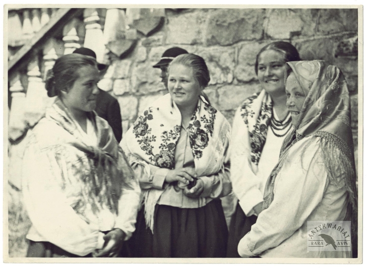 [GÓRY - Karpaty - Tatry - Góralki z Zakopanego - fotografia pozowana, sytuacyjna]. [1 poł. XX w.]. Fotografia form. 13x18 cm, autorstwa Jana Jaroszyńskiego.