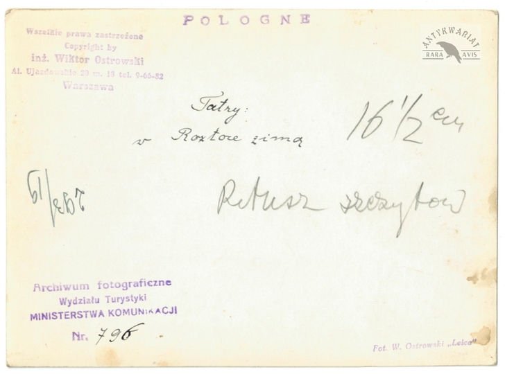 [GÓRY - Karpaty - Tatry w Roztoce zimą - fotografia widokowa, sytuacyjna]. [2. poł. XX w.]. Fotografia form. 12,9x17,7 cm, autorstwa Wiktora Ostrowskiego.