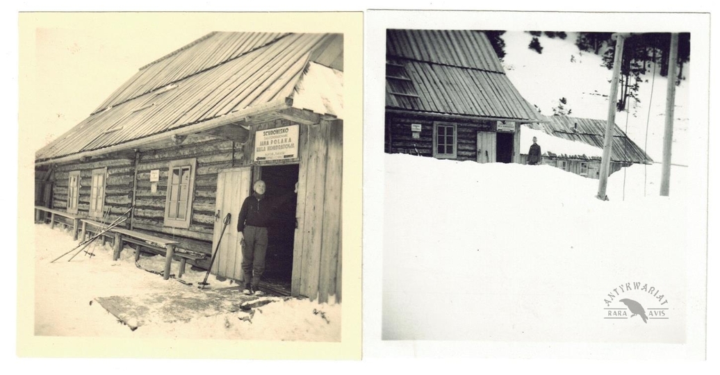 [GÓRY - Karpaty - Tatry - nieistniejące schronisko Jana Polaka na Hali Kondratowej) - fotografie sytuacyjne, widokowe]. [pocz. l. 40. XX w.]. Zestaw 2 fotografii form. ca 6x6 cm.
