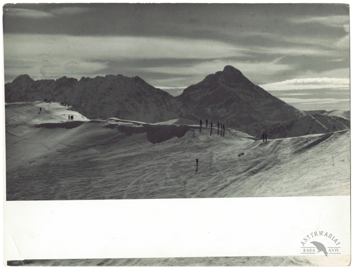 [GÓRY - Karpaty - Tatry - Mur Hrubego i Krywań z Kasprowego - fotografia widokowa, sytuacyjna]. [2. poł. XX w.]. Fotografia form. 18x24 cm, autorstwa Romana Serafina z Zakopanego.