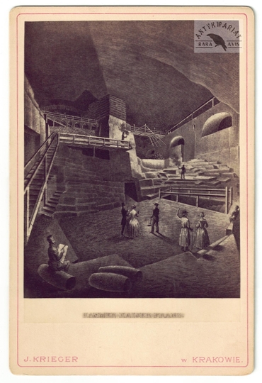[WIELICZKA - komnata cesarza Franciszka - fotografia widokowa - ujęcie w formacie gabinetowym]. [1886?]. Fotografia form. 12,3x9,5 cm na oryg. podkładzie form. 16,5x11 cm, autorstwa J[gnacego] Kriegera w Krakowie.