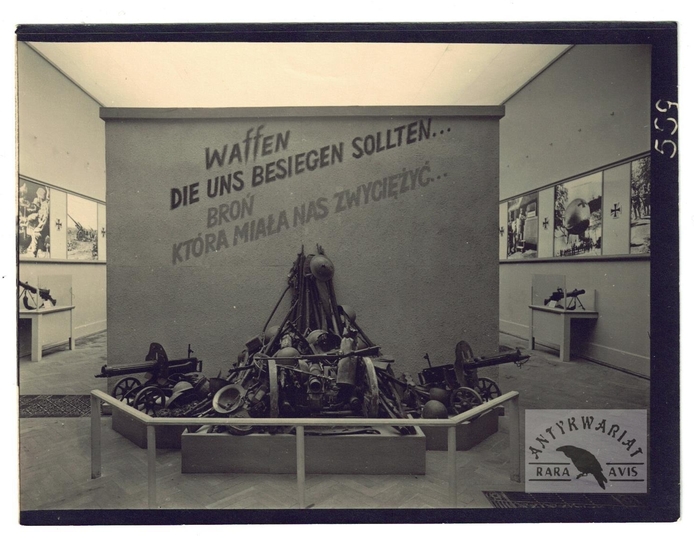 [KRAKÓW - wystawa wojenna w Sukiennicach - fotografie sytuacyjne i pokazowe]. [VII 1942]. Zestaw 4 fotografii form. 13x18 cm + 12 fotografii form. 9x12 cm.