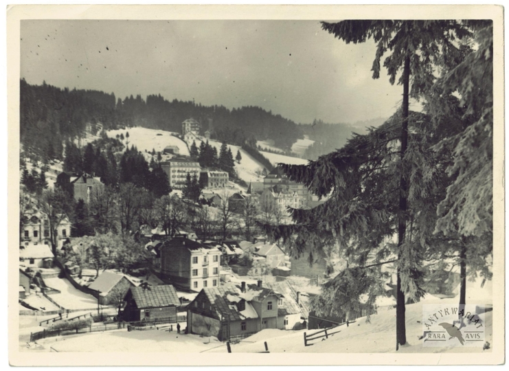 [KRYNICA - panorama miasta - fotografia widokowa]. [l. 30. XX w.]. Fotografia form. 13x18,2 cm, wykonana na zlecenie na zlecenie agencji Photo-Plat z Warszawy.