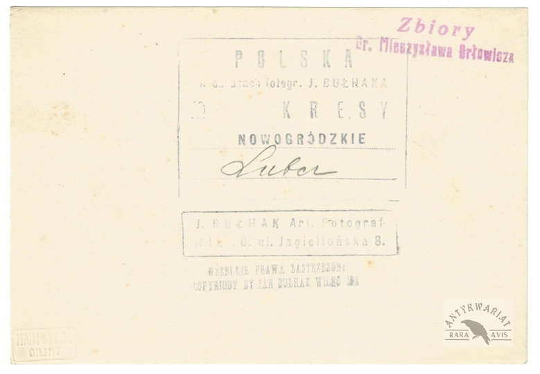 [LUBCZ - wieża zamkowa - fotografia widokowa]. [l. 30 XX w.]. Fotografia form. 11,2x16,2 cm, autorstwa Jana Bułhaka w Wilnie.