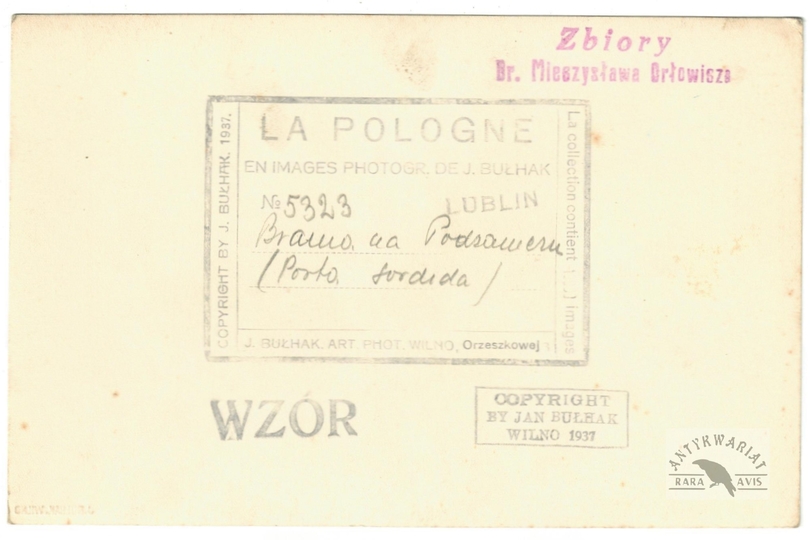 [LUBLIN - Brama Zasrana (Porta Sordida) - fotografia widokowa]. [1937]. Fotografia form. 16,8x11,2 cm, autorstwa Jana Bułhaka.