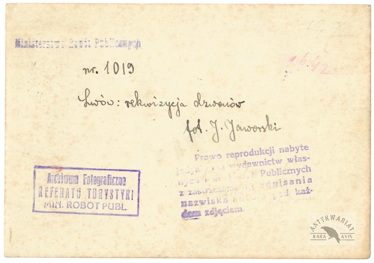 [LWÓW - rekwizycja wojenna dzwonów kościelnych - fotografia sytuacyjna]. [1916]. Fotografia form. 11,8x16,9 cm, autorstwa [J[ózefa] Kościesza-Jaworskiego].