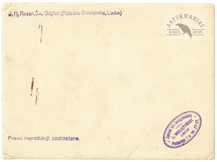[LWÓW - Katedra Ormiańska z zewnątrz - fotografia widokowa]. [nie przed 1921, nie po 1934]. Fotografia form. 23,4x16,7 cm, z zakładu L[udwika Piotra] Wieleżyńskiego we Lwowie.