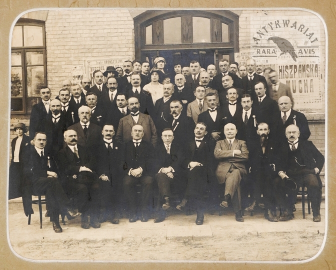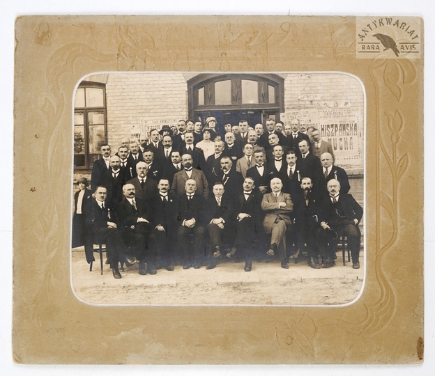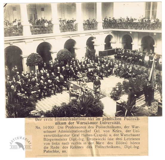 [WARSZAWA - pierwszy akt immatrykulacji na Politechnice Warszawskiej - fotografia prasowa, sytuacyjna]. [1915]. Fotografia form. 10,8x15 cm.