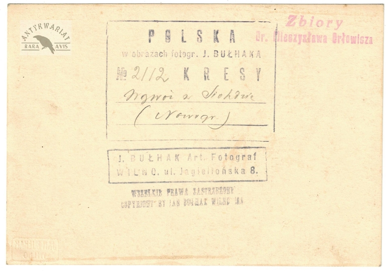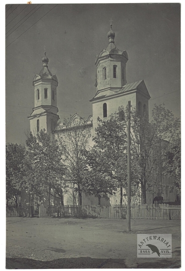 [NOWOGRÓDEK - dawny kościół OO. Bazylianów - fotografia widokowa]. [l. 30 XX w.]. Fotografia form. 16,8x11,1 cm, autorstwa Jana Bułhaka w Wilnie.