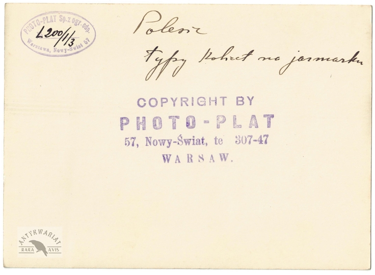 [POLESIE - typy kobiet na jarmarku - fotografia sytuacyjna, pozowana]. [l. 30 XX w.]. Fotografia form. 12,9x17,8cm, wykonana na zlecenie agencji Photo-Plat z Warszawy.