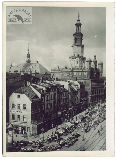 [POZNAŃ - widok na ratusz, domki budnicze - fotografia prasowa]. [nie po 25 VIII 1939]. Fotografia form. 18,2x13,2 cm.