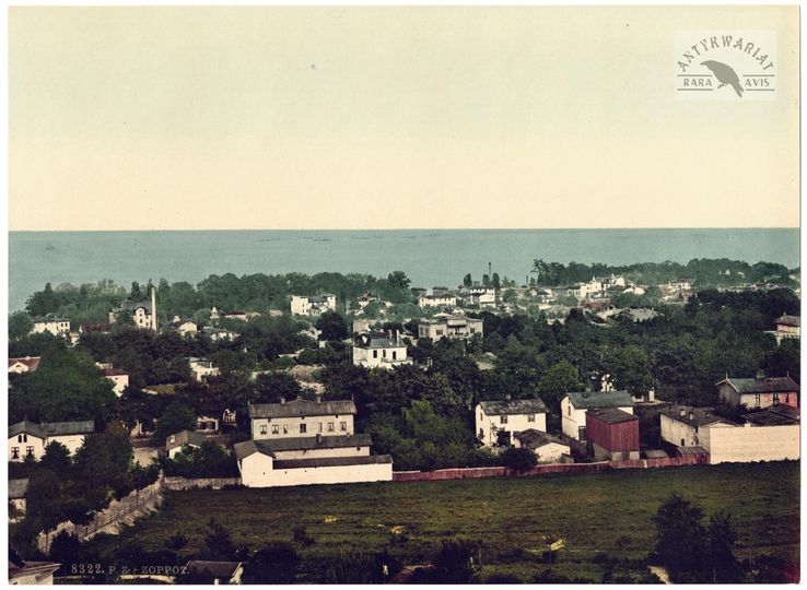 [SOPOT - panorama miasta - fotochrom]. [k. XIX w.]. Fotochromolitografia form. 16,5x22,4 cm, wykonana przez firmę Photochrom i Photoglob Zurich.
