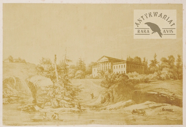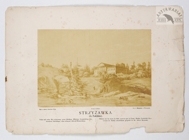 STRZYŻAWKA - widok pałacu nad rzeką Boh w Gubernii Podolskiej - fotografia J. Mielnickiego z rysunku z natury Napoleona Ordy. [nie przed 1881, nie po 1883]. Fotografia form. 19,328,9 cm na planszy form. ca 31,5x44,5 cm.