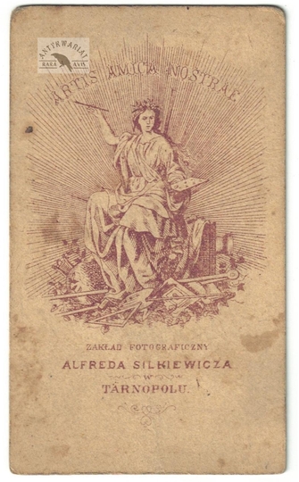 [TARNOPOL - Plac Sobieskiego i kościół OO. Dominikanów - fotografia widokowa - ujęcie w formacie card de visite]. [nie po 1894]. Fotografia form. 5,6x9,5 cm na oryg. podkładzie form. 6,2x10,5 cm, autorstwa Alfreda Silkiewicza w Tarnopolu.
