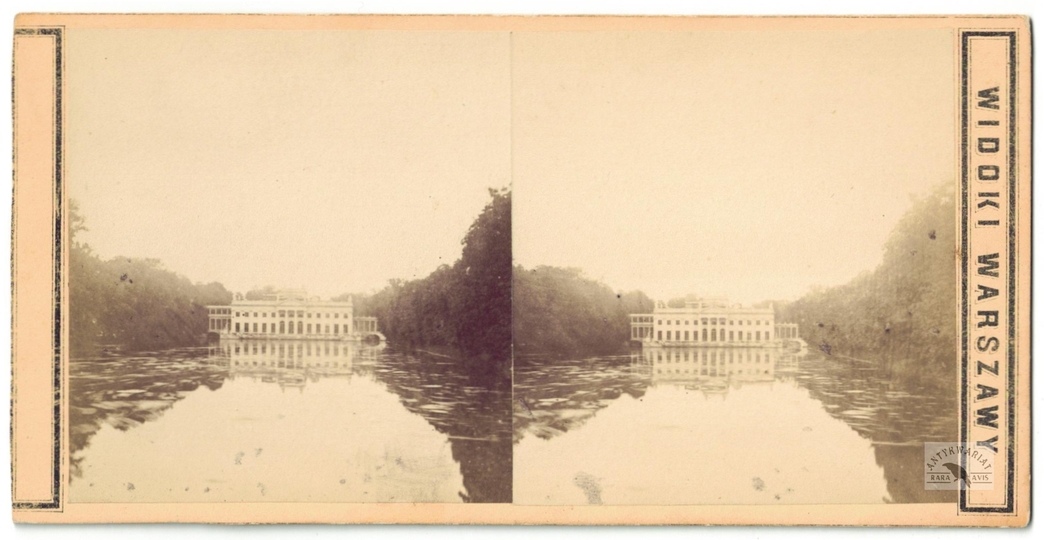[WARSZAWA - Pałac w Łazienkach Królewskich od strony Agrykoli - fotografia widokowa - stereoskopowa]. [l. 60. XIX w.]. Fotografia form. 8x7,5 cm razy dwa na oryg. podkładzie form. 8,6x17,2 cm, autorstwa Jana Mieczkowskiego w Warszawie.