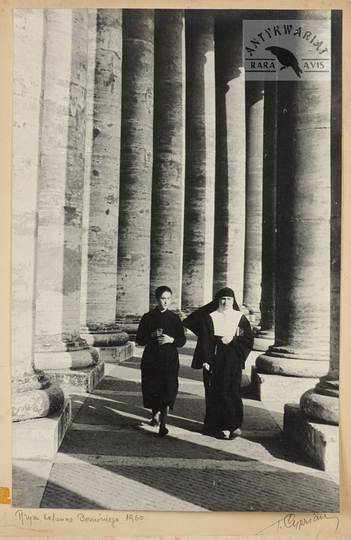 [WŁOCHY - "Rzym, Kolumna Berniniego" - fotografia artystyczna]. 1960. Fotografia czarno-biała form. 37,9x24,7 cm, na oryg. pokładzie form. 42x27,5 cm, autorstwa Tadeusza Cypriana.