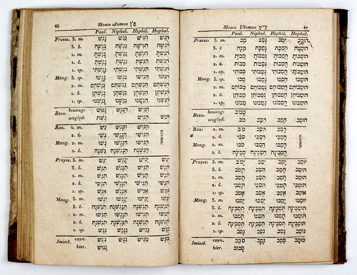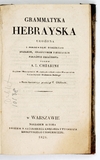 CHIARINI A. L[uigi]. – Grammatyka hebrayska ułożona i pokrewnemi dyalektami arabskim, chaldeyskim i syryackim pokrótce objaśniona przez ... Z textu łacińskiego przełożył P[iotr] Chlebowski. Warszawa 1826. Nakł. autora. 16d, s. [2], XVIII, [1], 140, tabl. 1. opr. psk. z epoki.