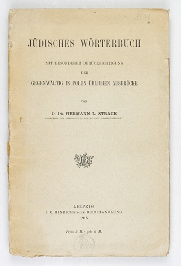 STRACK Hermann L. – Jüdisches Wörterbuch mit besonderer Berücksichtigung der gegenwärtig in Polen üblichen Ausdrücke. Leipzig 1916. J. C. Hinrichs. 8, s. XV, [1], 204, [4]. brosz.