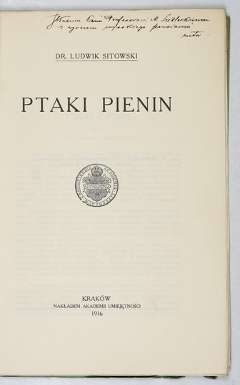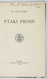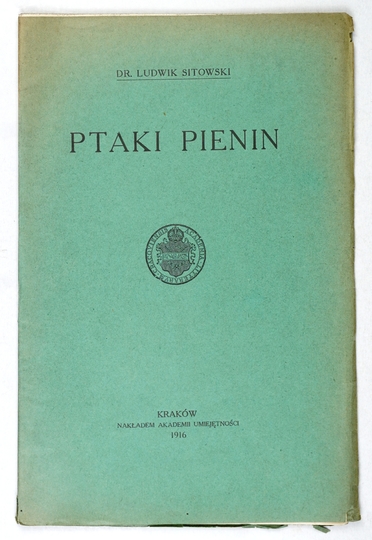 SITOWSKI Ludwik – Ptaki Pienin. Kraków 1916. AU. 8, s. [2], [44]-81. brosz. Odb. ze "Sprawozdań Komisji Fizjograficznej AU".
