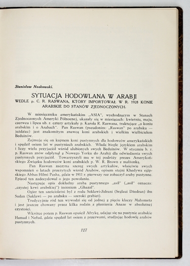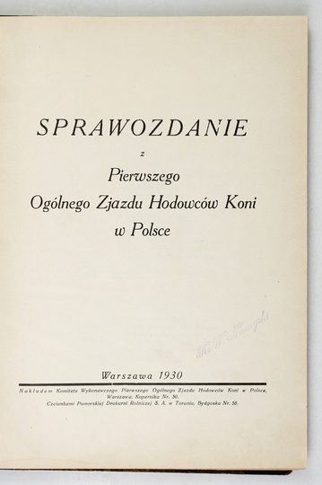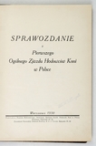 SPRAWOZDANIE z Pierwszego Ogólnego Zjazdu Hodowców Koni w Polsce. Warszawa 1930. Komitet Wykonawczy Pierwszego Ogólnego Zjazdu [...]. 4, s. [18], 252, [5]. opr. ppł. z epoki.