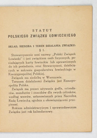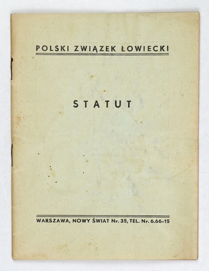 POLSKI Związek Łowiecki. Statut. Warszawa [1936?]. Zakł. Druk. F. Wyszyński i S-ka. 16, s. 52. brosz.