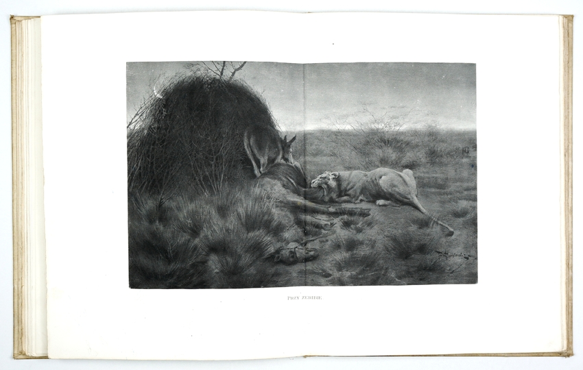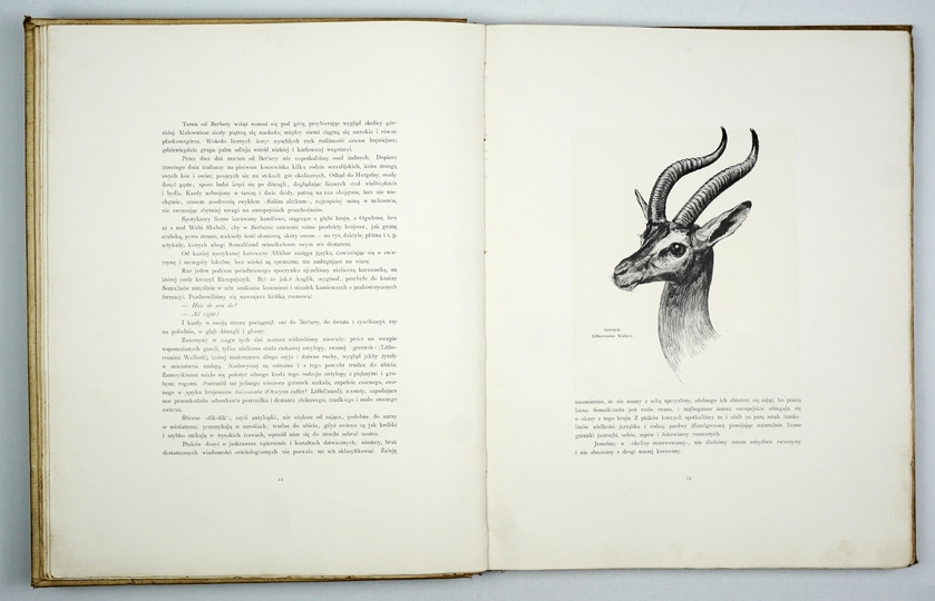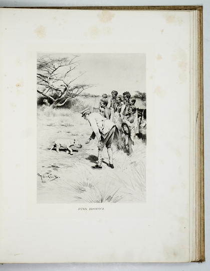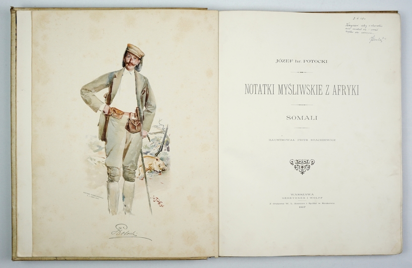 POTOCKI Józef – Notatki myśliwskie z Afryki. Somali. Illustrował Piotr Stachiewicz. Warszawa 1897. Gebethner i Wolff. folio, s. [4], 133, [1], tabl. 19, mapa rozkł. 1. opr. oryg. pł. zdob., górne obcięcie złoc.