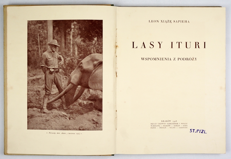 SAPIEHA Leon – Lasy Ituri. Wspomnienia z podróży. Kraków 1928. Druk. W. L. Anczyca. 4, s. 204, [3], mapy 2. opr. oryg. ppł.