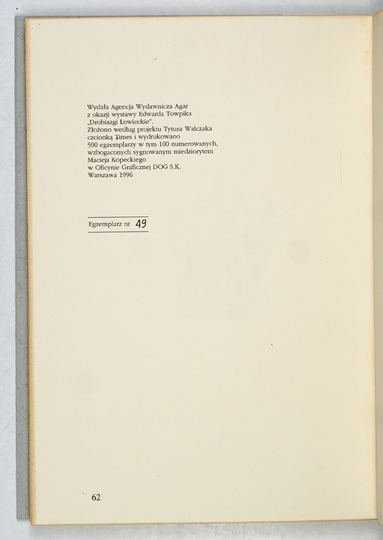 TOWPIK Edward – Drobiazgi łowieckie. Warszawa 1996. Agencja Wyd. "Agar". 8, s. 62. brosz., obw., futerał kart.
