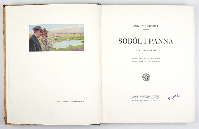 WEYSSENHOFF Józef – Soból i panna. Cykl myśliwski ozdobiony 85 barwnymi i czarnymi rysunkami Henryka Weyssenhoffa. Warszawa 1913. Nakł. Gebethnera i Wolffa. 4, s. [4], 228, [2], tabl. 15. opr. oryg. kart. z zach. okł. brosz.