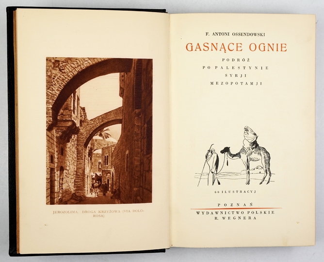 OSSENDOWSKI F[erdynand] Antoni – Gasnące ognie. Podróż po Palestynie, Syrji, Mezopotamji. 60 ilustracyj. Poznań [1931]. Wydawnictwo Polskie R. Wegnera. 8, s. [4], 357, [7], tabl. 32. opr. pł. z epoki z zach. okł. brosz.