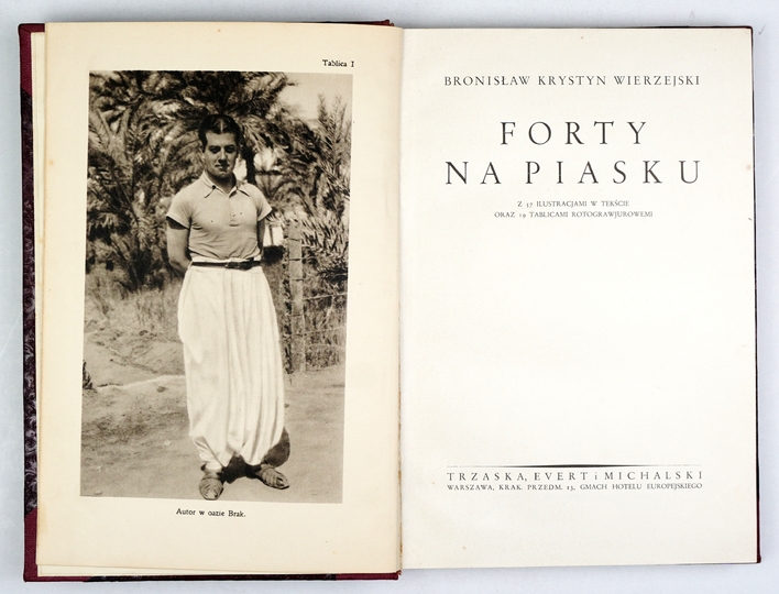 WIERZEJSKI Bronisław Krystyn – Forty na piasku. Z 57 ilustracjami w tekście oraz 19 tablicami rotograwjurowemi. Warszawa [1936]. Trzaska, Evert i Michalski. 8, s. [4], 203, [4], tabl. 19 [w tym 1 mapa rozkł.]. opr. ppł. z epoki.