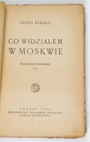 BÉRAUD Henri – Co widziałem w Moskwie. Tłomaczył z oryginału J. H. Poznań 1926. Wielkopolska Księg. Nakładowa K. Rzepeckiego. 8, s. 184, tabl. 8. brosz.