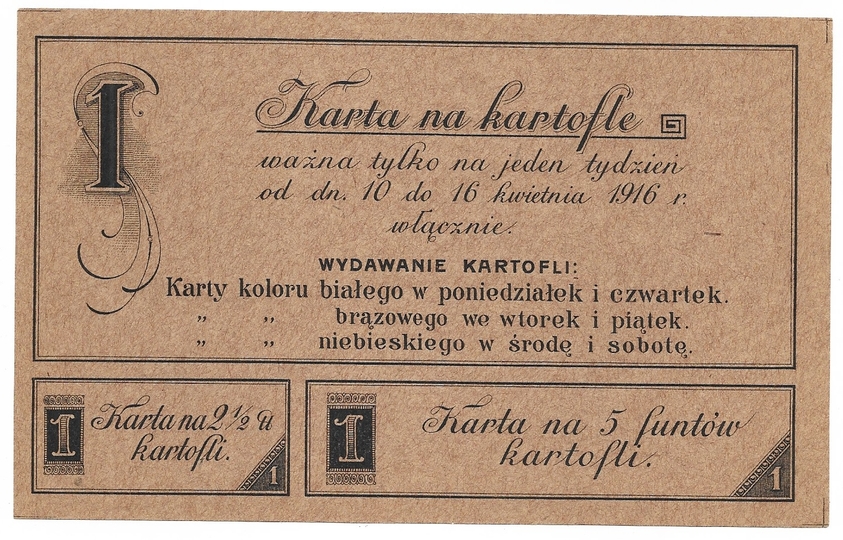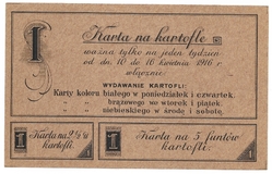 [KARTKA żywnościowa]. Karta na kartofle ważna tylko na jeden tydzień od dn. 10 do 16 kwietnia 1916 r. włącznie.