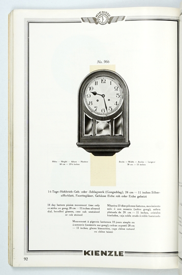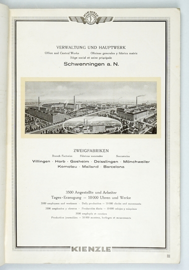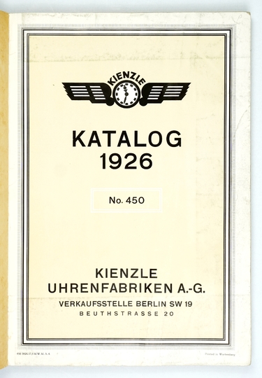 KIENZLE Uhrenfabrik A.-G. Katalog 1926. No. 450. Berlin 1926. 4, s. XI, [1], 204. brosz.