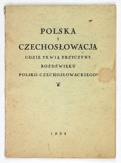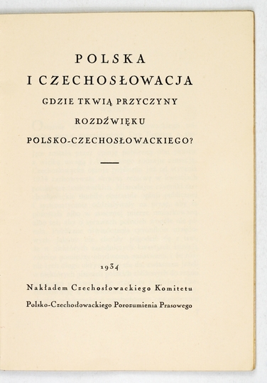 POLSKA i Czechosłowacja. Gdzie tkwią przyczyny rozdźwięku polsko-czechosłowackiego. Praha 1934. Nakł. Czechosłowackiego Komitetu Polsko-Czechosłowackiego Porozumienia Prasowego. 16d, s. 43, [1]. brosz.