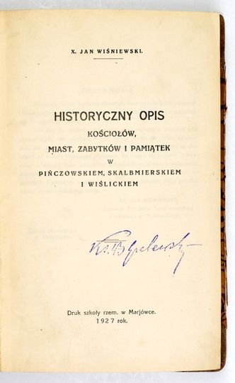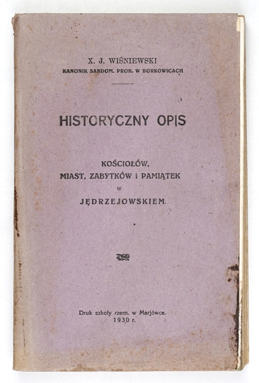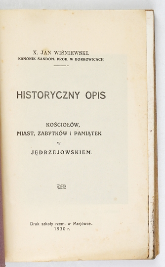 WIŚNIEWSKI Jan – Historyczny opis kościołów, miast, zabytków i pamiątek w Jędrzejowskiem. Marjówka 1930. Druk. Szkoły rzem. 8, s. 443, [1], tabl. 10. brosz.