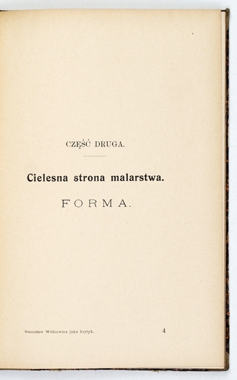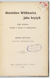 BENEDYKTOWICZ Ludomir – Stanisław Witkiewicz jako krytyk, jego pojęcia, zasady i teorye w malarstwie. Rozbiór krytyczny ... Kraków 1902. Sp. Wyd. Pol. 8, s. 127, [4]. opr. bibliot. ppł.