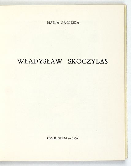 GROŃSKA Maria – Władysław Skoczylas. Wrocław 1966. Ossolineum. 16d, s. 106, [1], tabl. 1. brosz., obw.